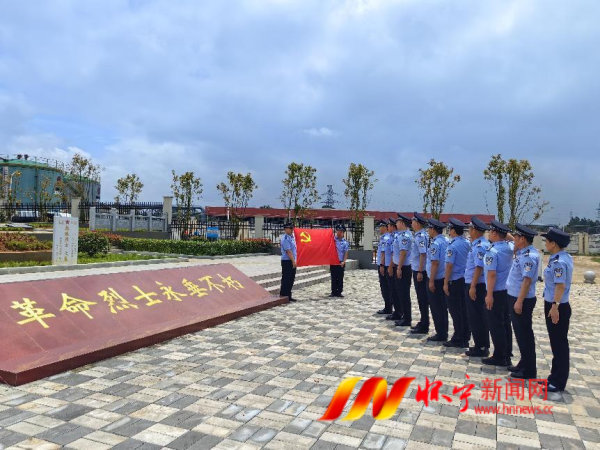上午11時整,在高河烈士紀念園內,全體黨員民警神情肅穆、莊嚴肅立、脫帽默哀,通過瞻仰烈士生平事跡簡介,深刻感受革命先烈不怕犧牲、拼搏奮斗、一心為民的家國情懷。隨后,面對鮮艷的黨旗,全體黨員民警舉起右拳重溫入黨誓詞,錚錚誓言響徹云霄、震撼心靈。