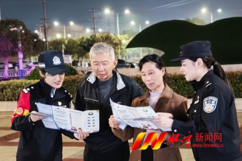 10月29日晚,縣公安局高河派出所聯合治安大隊、禁毒大隊在市民廣場開展安保巡邏,同步搭建“平安小攤”,將安全知識與人間煙火氣巧妙結合,吸引眾多群眾前往駐足觀看。民輔警穿梭在人群中,通過講解宣傳冊內容和真實案例,向市民科普禁毒和防詐騙的相關知識。朱麗 丁靜 攝