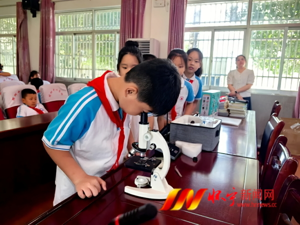 為了讓孩子們更深入理解光學(xué)原理,志愿者現(xiàn)場拆解了顯微鏡的光學(xué)系統(tǒng),演示光線如何通過物鏡和目鏡層層放大成像。孩子們操作顯微鏡,觀察洋蔥表皮細(xì)胞和花粉樣本?!巴?!洋蔥細(xì)胞像排列整齊的小房間!”“花粉的形狀好像小刺球!”驚嘆聲此起彼伏。