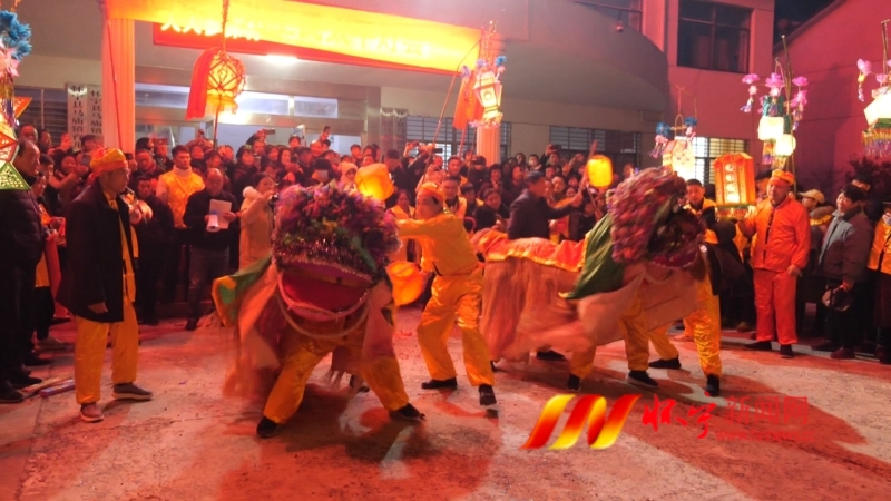 活動現場,高燈彩旗飄揚,鼓樂雜奏,煙花鞭炮響徹鄉間,村里的舞獅隊迅速集結起來,各家各戶也帶上自制的燈籠,踴躍地加入“舞獅燈”的隊伍,展演最具本地特色的“太平獅燈”傳統民俗,用熱鬧喜慶的方式,祈愿一年順遂、國泰民安。