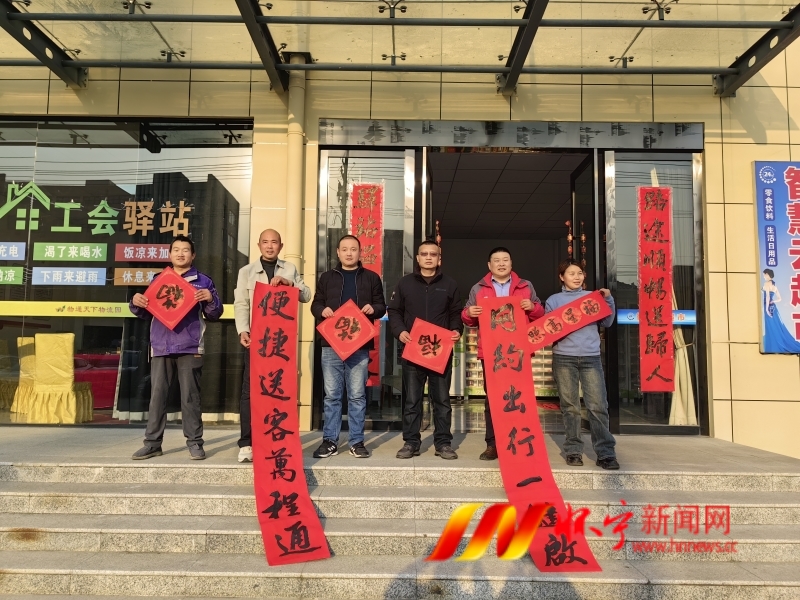 1月20日下午,在縣經開區安慶物通天下物流有限公司,縣交通運輸局黨建工作指導員現場揮毫潑墨,為新業態勞動者書寫春聯,以墨香傳遞溫暖與祝福,向堅守崗位的“城市奔跑者”表達敬意與關懷。活動現場,共向新就業群體送出各類春聯及慰問大禮包40余份。余兆金 攝