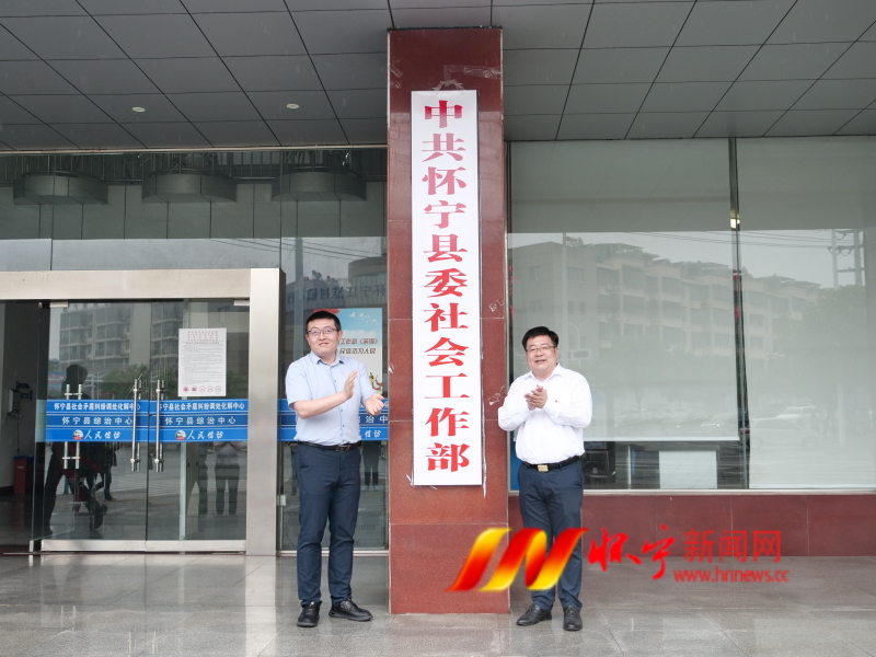 本網訊 5月11日,中共懷寧縣委社會工作部、中共懷寧縣委非公有制經濟和社會組織工作委員會掛牌成立。縣委副書記代瑜,縣委常委、政法委書記汪楓林,縣委常委、組織部長祝鶴鳴,副縣長馬健出席揭牌儀式。代瑜、祝鶴鳴共同揭牌。