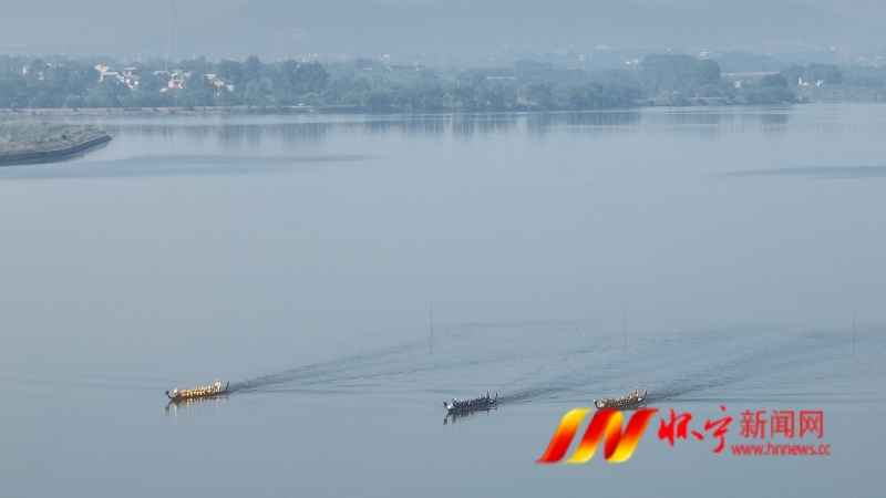 位于縣城附近的三鴉寺湖,湖面波光粼粼,岸邊人頭攢動。隨著一聲號令,3條龍舟如離弦之箭,在鼓手激昂的鼓點聲中破水而出。