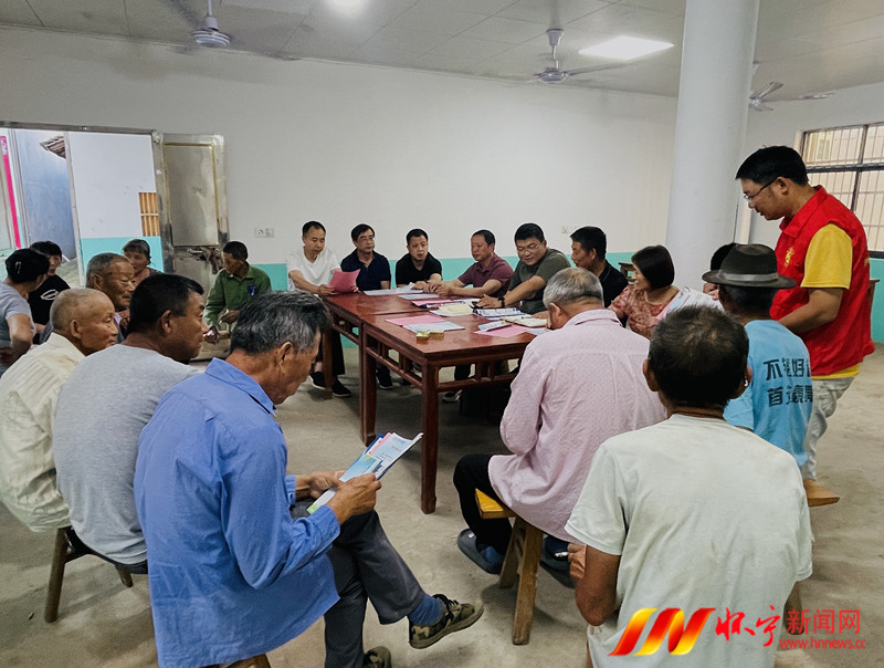 圖為洪鋪鎮鎮村干部群眾在“鄉村夜話”上商討移風易俗實施方案