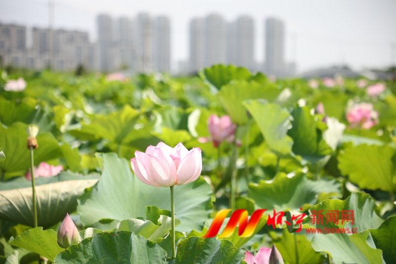 這片荷花基地與縣城僅一河之隔,高樓大廈與荷花同框。這片荷花不僅連著縣城的繁華與鄉村的詩意,還承載著人們對慢下來、靜下來詩意生活的美好向往。
