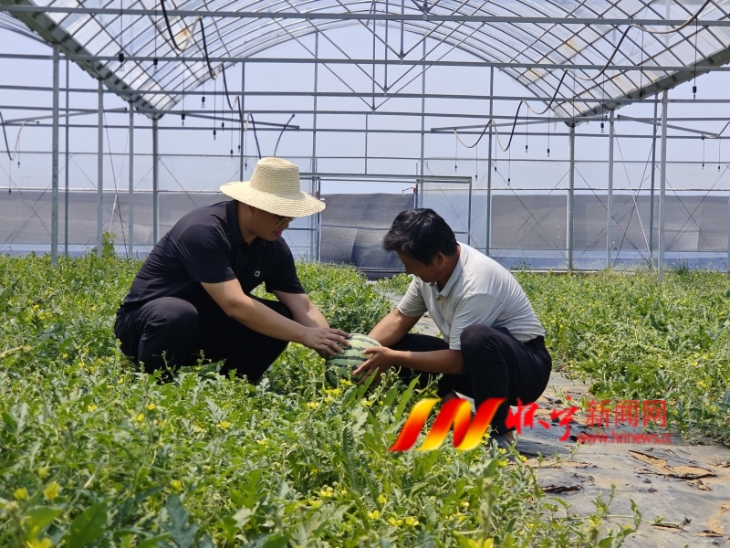 在臘樹鎮蔬菜產業園西瓜種植大棚,鎮農技員李紹軍頂著烈日查看西瓜生長狀況,指導農戶及時做好高溫熱害防范。“這些天天氣持續高溫,可以在上午10點到下午3點給大棚覆蓋遮陽網,控制棚內溫度。另外采用早晚滴灌,避免正午澆水引發燒苗……”