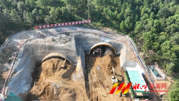 一大早,在洪鋪鎮石庫村新安嶺隧道處,施工隊伍正忙著對隧道洞口進行初期支護施工。