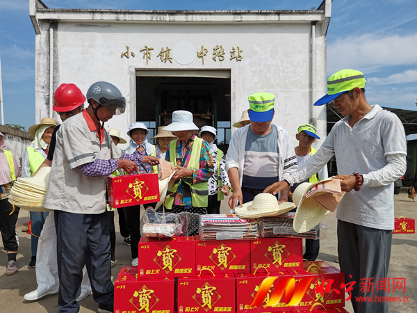 本網訊 8月9日,小市鎮黨委、政府組織開展“清涼度盛夏 安康伴我行”夏送清涼慰問活動,為轄區內50多名環衛工人送上毛巾、帽子以及飲料等,叮囑他們注意身體,合理安排時間,避開高溫時段作業,確保安全度夏。(全媒體記者 王成杰)