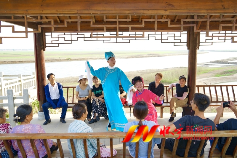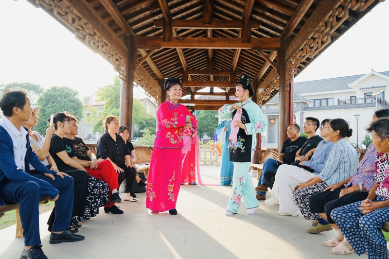 9月10日,洪鋪鎮金義黃梅戲劇社進村入戶為村民表演黃梅戲。金義黃梅戲劇團自1989年創建以來,長期堅持面向農村、面向基層,貼近實際、貼近群眾、貼近生活,在縣內外開展健康向上、群眾喜聞樂見的黃梅戲演出活動,積極傳播先進文化,年均演出近百場次,深受農民群眾歡迎,為鄉村振興注入強大精神動力。檀志揚 趙林玉 攝