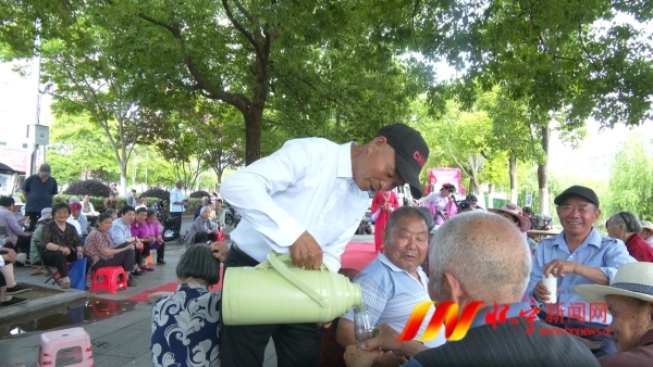 “我每天都趕到這里來,給他們倒茶倒水,搞好服務,看到他們的笑臉,我感到很滿足?!笨h九華橋黃梅戲劇團演員曹黑奤說。