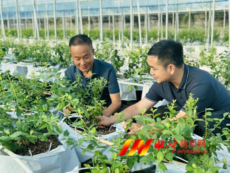 7月31日,高河鎮和平村村干在“5G藍莓”基地查看藍莓長勢。和平村通過項目資金和招商引資,投資400多萬元建成120畝的“5G藍莓”基地,通過采取全基質無土栽培,引進國外水肥一體微噴灌等先進技術種植藍莓,不僅讓這里的藍莓比普通藍莓提前一個多月上市,而且畝均藍莓產量和效益大大提高,有力促進了村級集體經濟和群眾增收。檀志揚 劉曉勇 攝