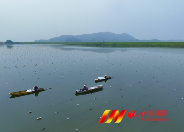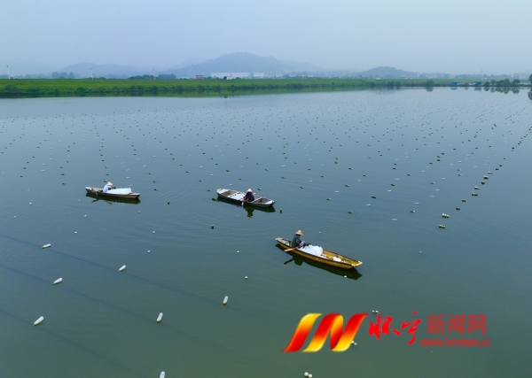 9月11日,在洪鋪鎮東圩一家珍珠蚌養殖場,工人們正忙著收獲珍珠蚌。近年來,洪鋪鎮利用豐富的水資源優勢,引導農民養殖珍珠蚌,帶動村民增收致富。檀志揚 趙林玉 攝