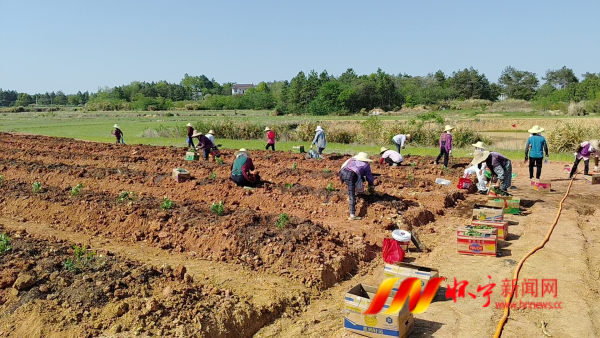本網訊 暮春時節,在三橋鎮社塘嶺村的藍莓種植基地里,一幅生機勃勃的景象映入眼簾。社塘嶺村黨總支書記江小生正帶領著二十余名村民,有條不紊地進行著藍莓秧苗的栽種工作。