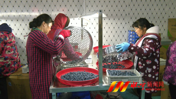 在秀山鄉觀鋪村藍莓精品種植園的分揀車間里,一派熱火朝天的繁忙景象。為了保持藍莓果的新鮮品質,車間內溫度始終保持在5攝氏度左右,40多名工人穿著厚厚的冬裝,熟練地對藍莓進行分類、篩選、裝盒、稱重、包裝等操作,日處理量達1.5萬斤。記者了解到,這些工人全部都是當地的村民,家鄉藍莓產業的蓬勃發展給他們提供了家門口的就業機會。