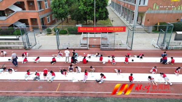 活動中,兩卷共長達100米的白色畫布沿著跑道緩緩鋪開,成為現場最引人注目的“紅色課堂”。孩子們紛紛趴在跑道上展開創作,雖然線條有些稚嫩,但每一筆都透著認真?,F場沒有喧鬧,只有畫筆在畫布上“沙沙”的聲音,還有孩子們小聲交流的討論聲,氣氛熱鬧又莊重。一個小女孩正低著頭畫五星紅旗,小眉頭微微皺著,格外專注。她停下筆笑著說:“我要記錄下五星紅旗迎風招展的樣子,現在的生活這么好,我以后要好好學習,長大也為祖國做貢獻?!保ㄍㄓ崋T 何翔)